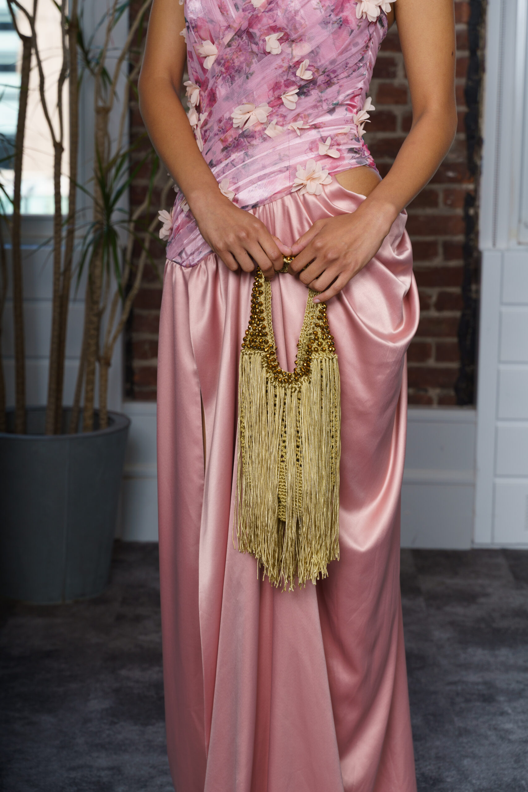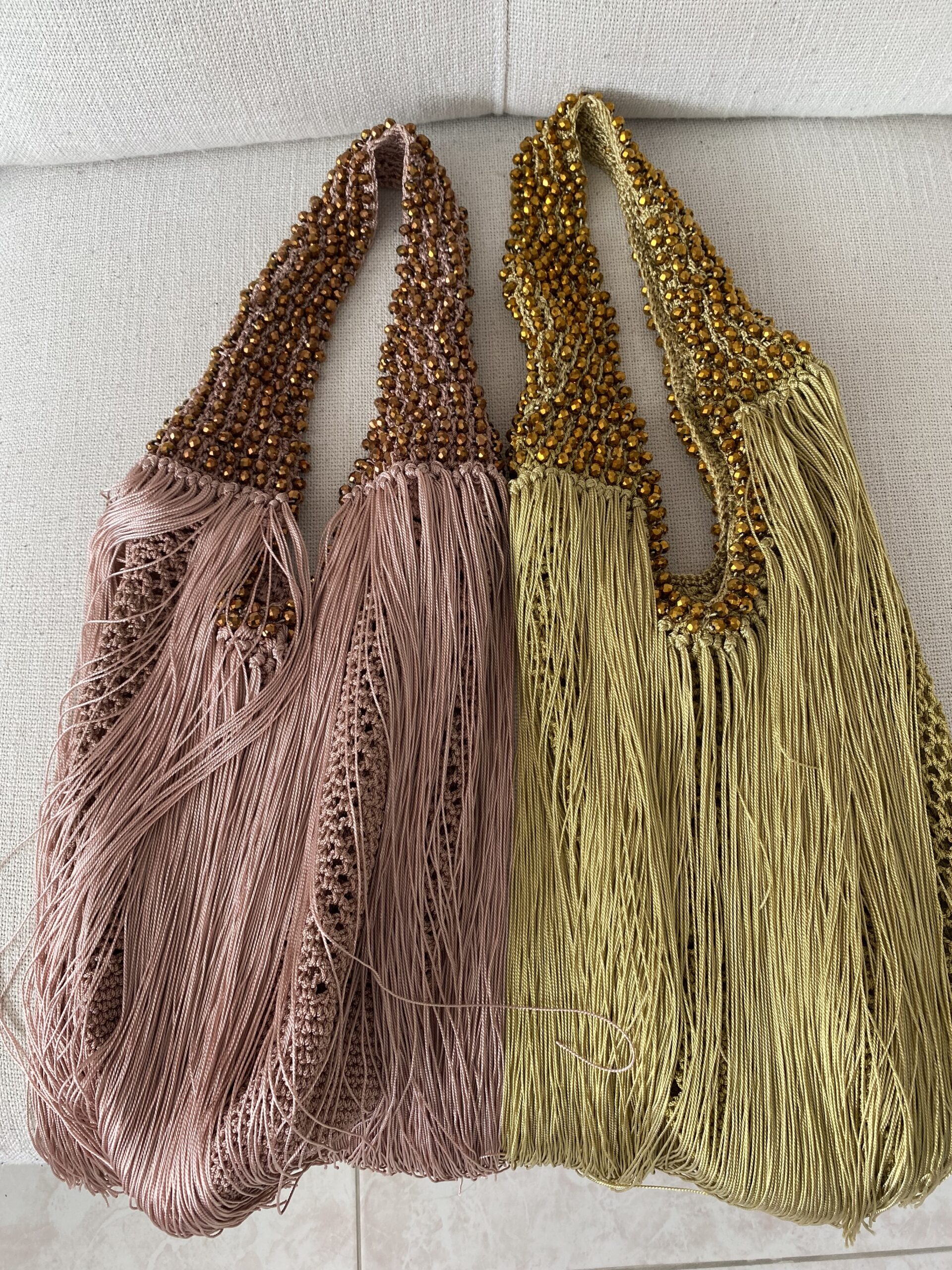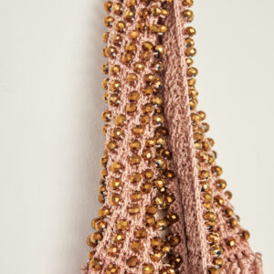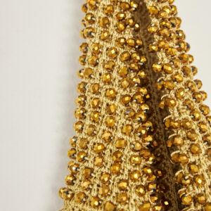 Mini Woven bag in textile fibers, color Golden, measures 50X17. Golden crystals Strap. Price in US Dollar. AVAILABLE FOR SHIPING IN 5 DAYS.